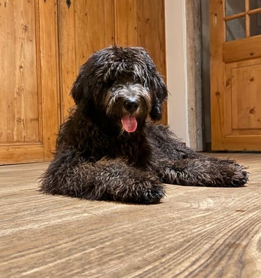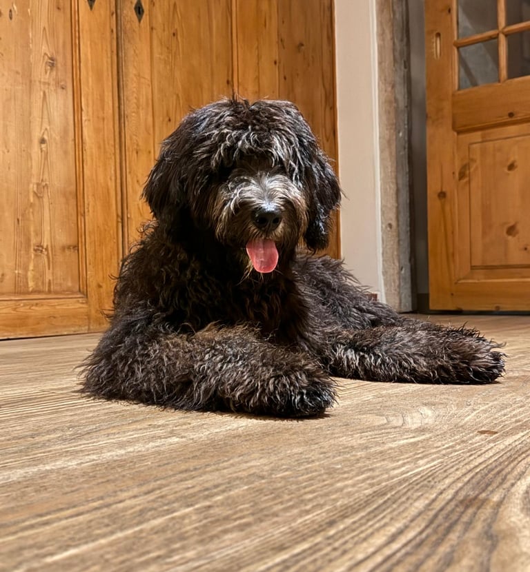We fell in love at first sight with a black Goldendoodle puppy with white paws, born last September. From the very beginning, Luca supported us and documented the puppy’s growth week by week. We visited the breeding facility and saw firsthand the excellent conditions, located on a hill with large outdoor spaces available for the dogs.